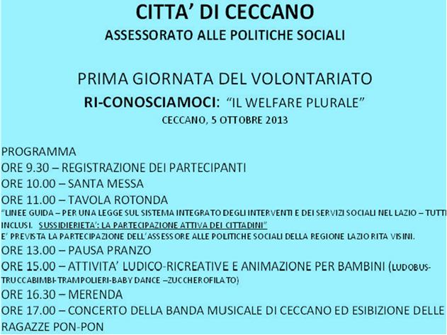 PRIMA GIORNATA DEL VOLONTARIATO