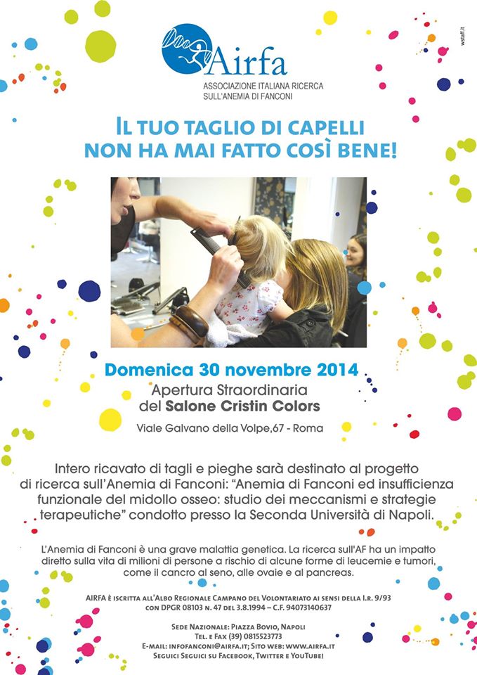 L’Associazione Italiana per Ricerca sull’Anemia di Fanconi (AIRFA), in collaborazione con alcuni centri clinico/scientifici italiani e l’Associazione Fanconi statunitense (FARF), sempre attenta ad ogni intervento che possa aiutare la prevenzione di complicanze, ha organizzato uno screening del cavo orale, grazie alla cooperazione di specialisti tedeschi con strumentazioni di ultima generazione, le quali sono in grado di rilevare piccolissime lesioni.