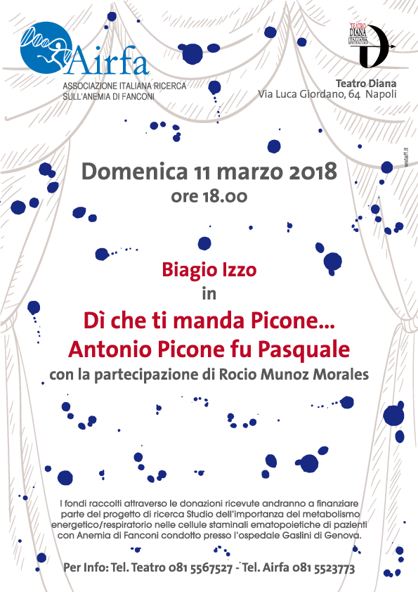 In aggiunta o in alternativa agli articoli solidali, potrai scegliere un biglietto dello spettacolo che Airfa e il Teatro Diana di Napoli hanno scelto per te: Biagio Izzo in “Dì che ti manda Picone…”