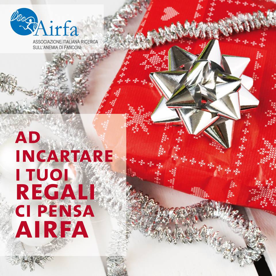 In occasione del Natale l’AIRFA promuove la campagna di raccolta fondi: “Ad Incartare i tuoi regali ci pensa AIRFA”. Volontari, in tutta Italia, realizzeranno confezioni natalizie in cambio di libere donazioni che saranno devolute ad un progetto di ricerca che l’AIRFA ha scelto di finanziare per il 2015: “Studio dell’attività delle metalloproteasi in cellule di pazienti con anemia di Fanconi”, condotto dal Dr. Enrico Cappelli – Ospedale Gaslini di Genova.