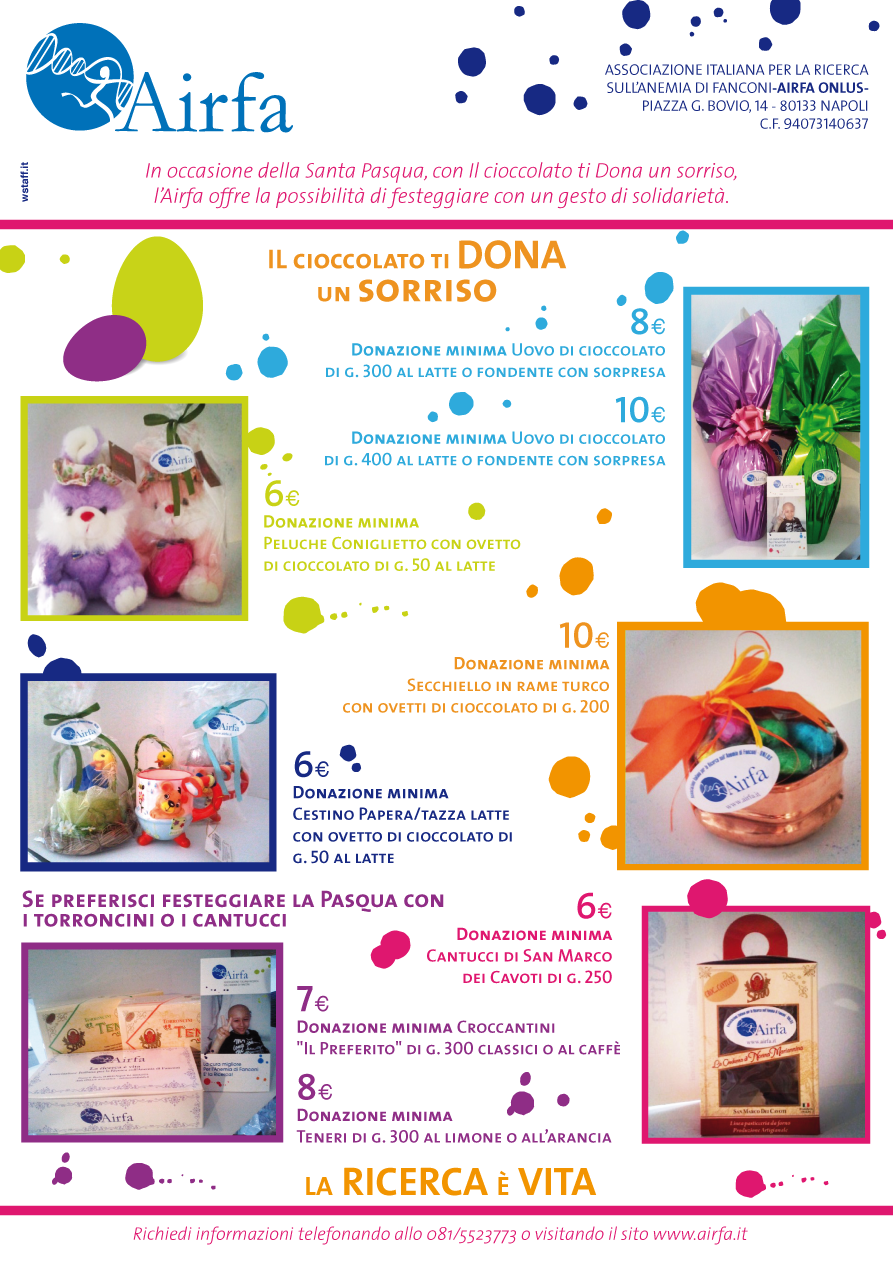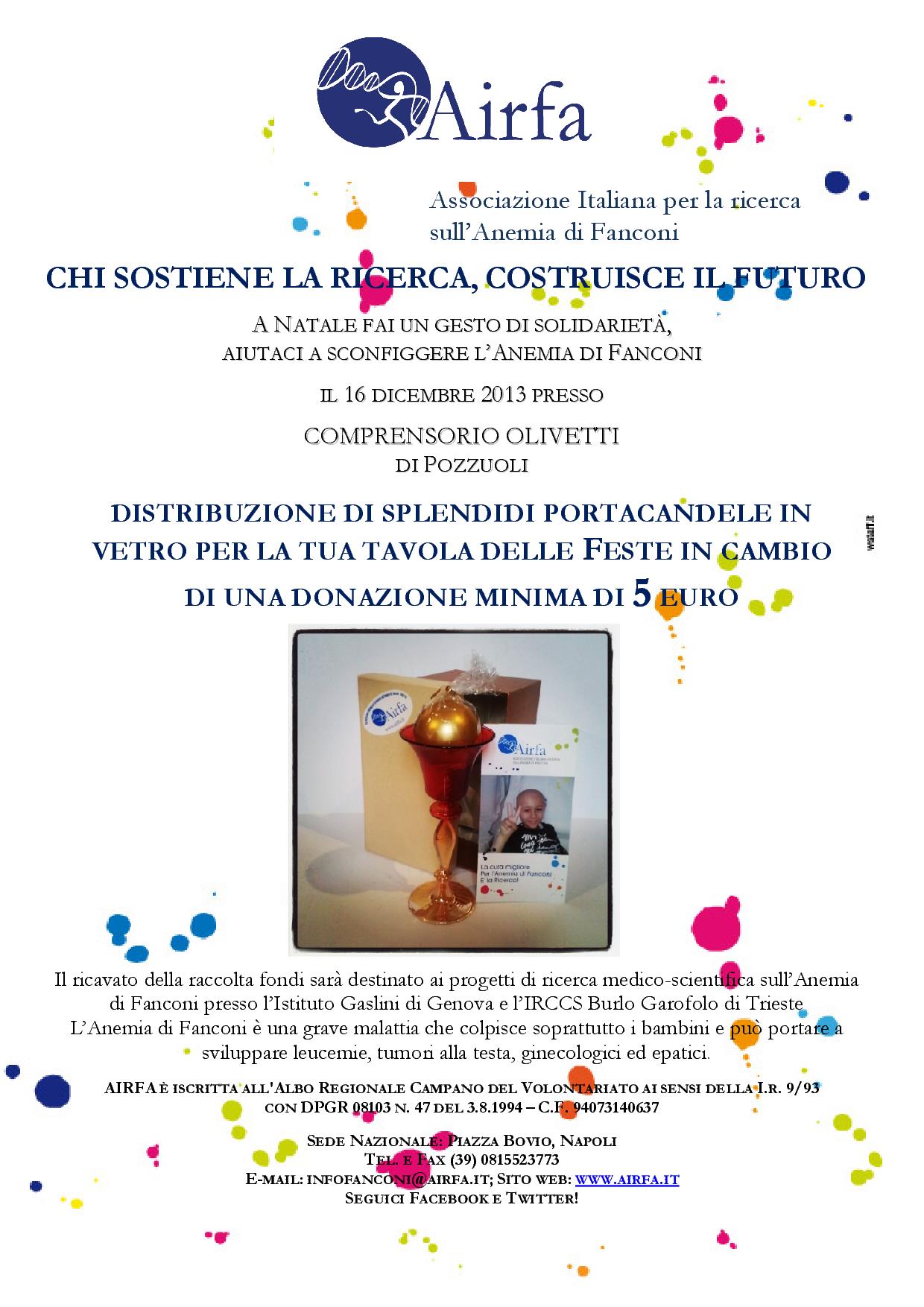 L’evento vuole avvicinare i giovani al volontariato e sensibilizzarli alla solidarietà. La partecipazione alla manifestazione è gratuita. Per informazioni o per ritirare gli inviti è possibile contattare il numero 081 5523773 oppure inviare email a infofanconi@airfa.it