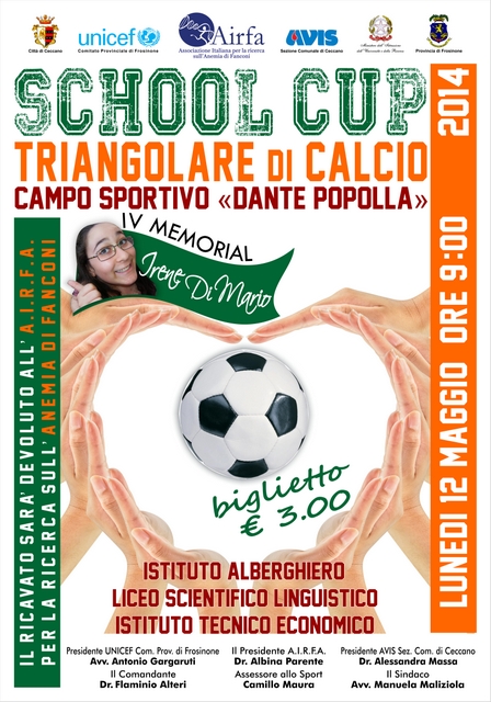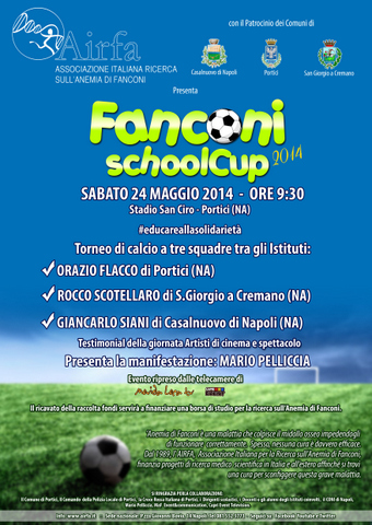 Il 24 maggio 2014, alle ore 9.30 presso lo Stadio San Ciro di Portici si terrà un torneo di calcio a tre squadre, la “Fanconi School Cup”, tra le scuole superiori di Portici, San Giorgio a Cremano e Casalnuovo di Napoli, organizzato dall’AIRFA.