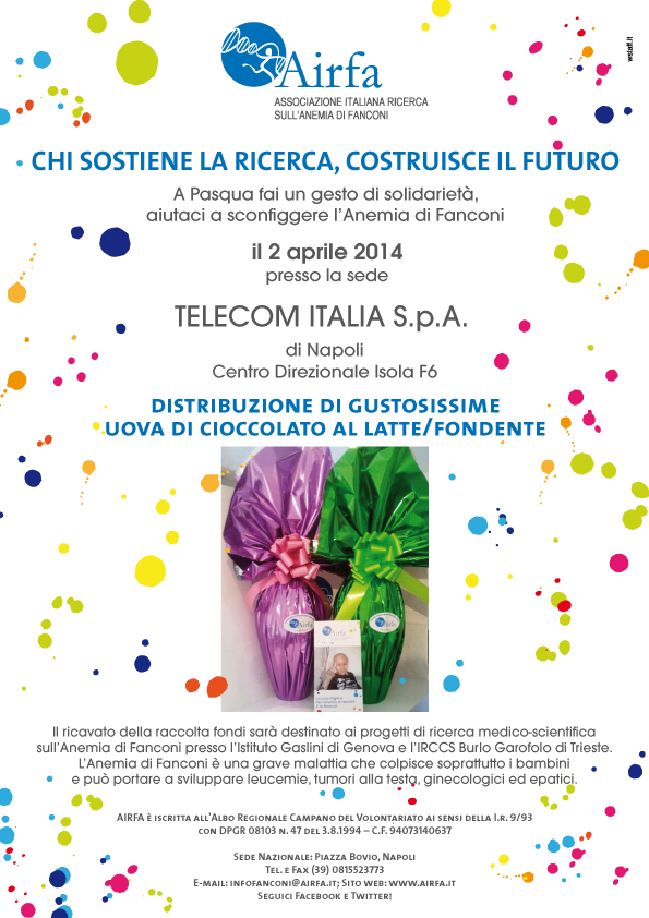 Il ricavato della raccolta fondi servirà a finanziare una borsa di studio per la ricerca sull’Anemia di Fanconi.