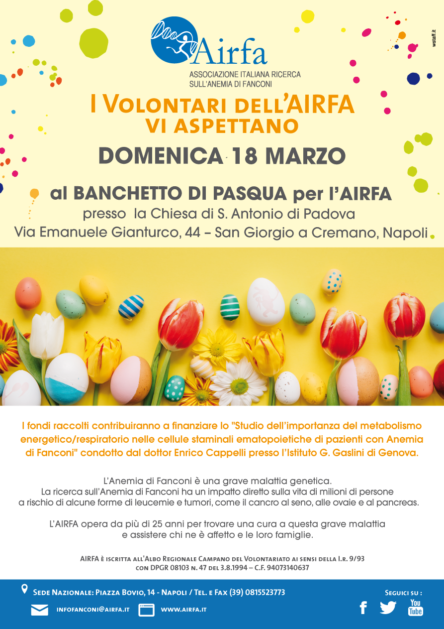 La Pasqua si sta avvicinando! Scegliendo un prodotto AIRFA da regalare ai tuoi cari per una Pasqua solidale contribuirai alla Ricerca Scientifica sull’Anemia di Fanconi!