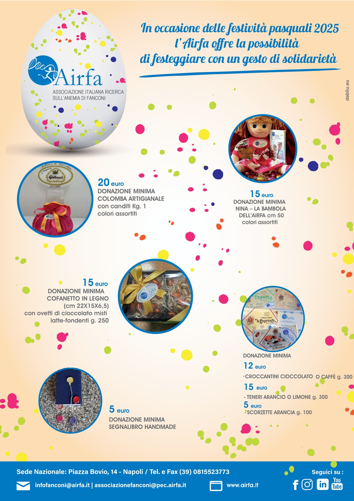 Scegli un prodotto AIRFA e regala ai tuoi cari una Pasqua solidale contribuendo alla Ricerca Scientifica sull’Anemia di Fanconi!
