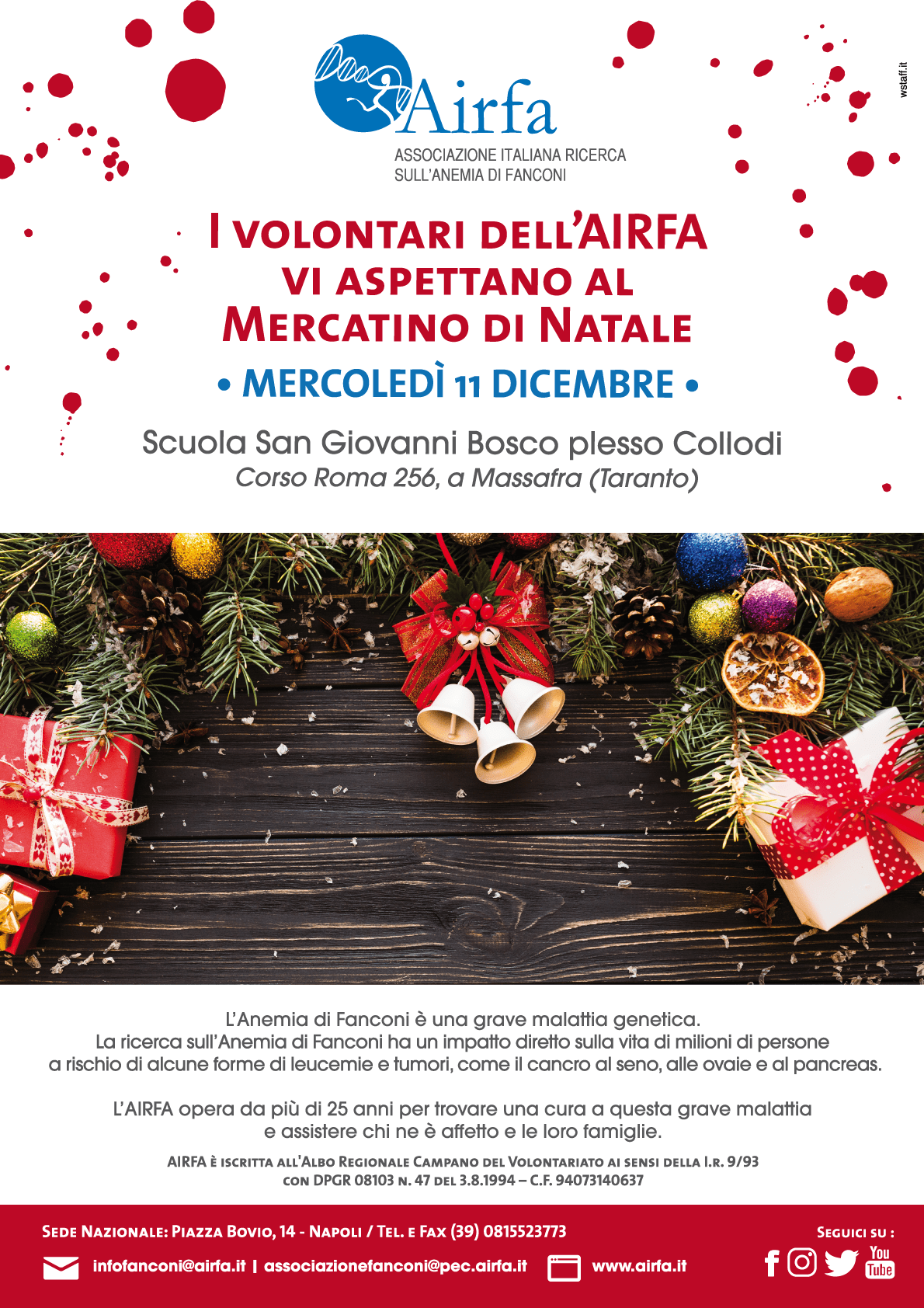I volontari dell’Airfa vi aspettano al Banchetto di Natale del 7 dicembre a Massafra (Taranto) da largo Capreoli a piazza Santa Guida. Rione Gesù Bambino.