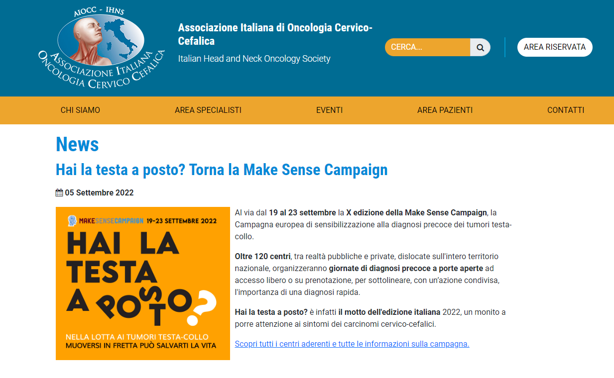 È il motto dell’edizione italiana della Make Sense Campaign, la Campagna europea di sensibilizzazione alla diagnosi precoce dei tumori testa collo che si terrà dal 19 al 23 settembre.