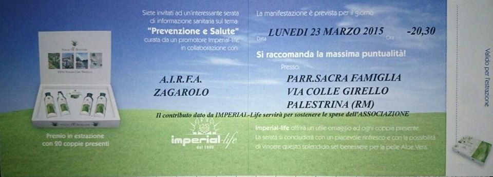 L’AIRFA vi invita ad una serata dedicata all’‪#‎informazione‬ sanitaria! L’iniziativa ‪#‎Prevenzione‬ e ‪#‎Salute‬ si terrà lunedì 23 marzo alle 20,30 alla parrocchia Sacra Famiglia di ‪#‎Palestrina‬.